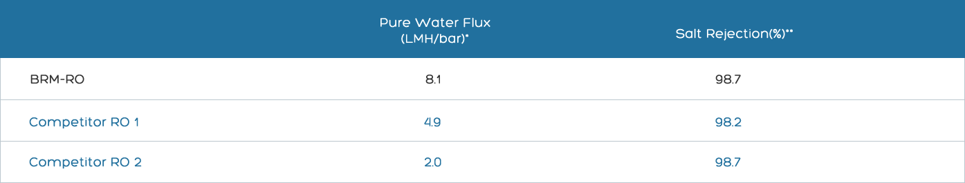 BPM-RO operates at a pressure 2 to 4 times lower than conventional RO membranes, thus consuming far less energy.